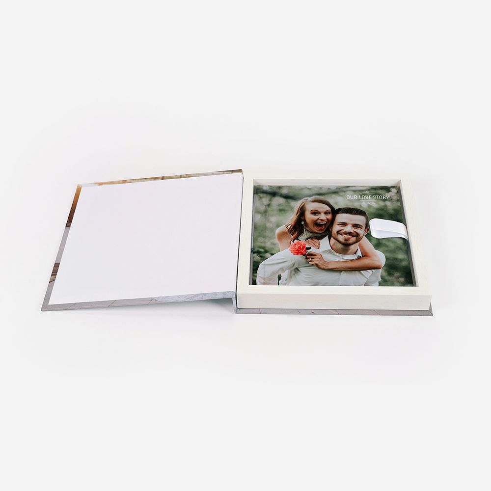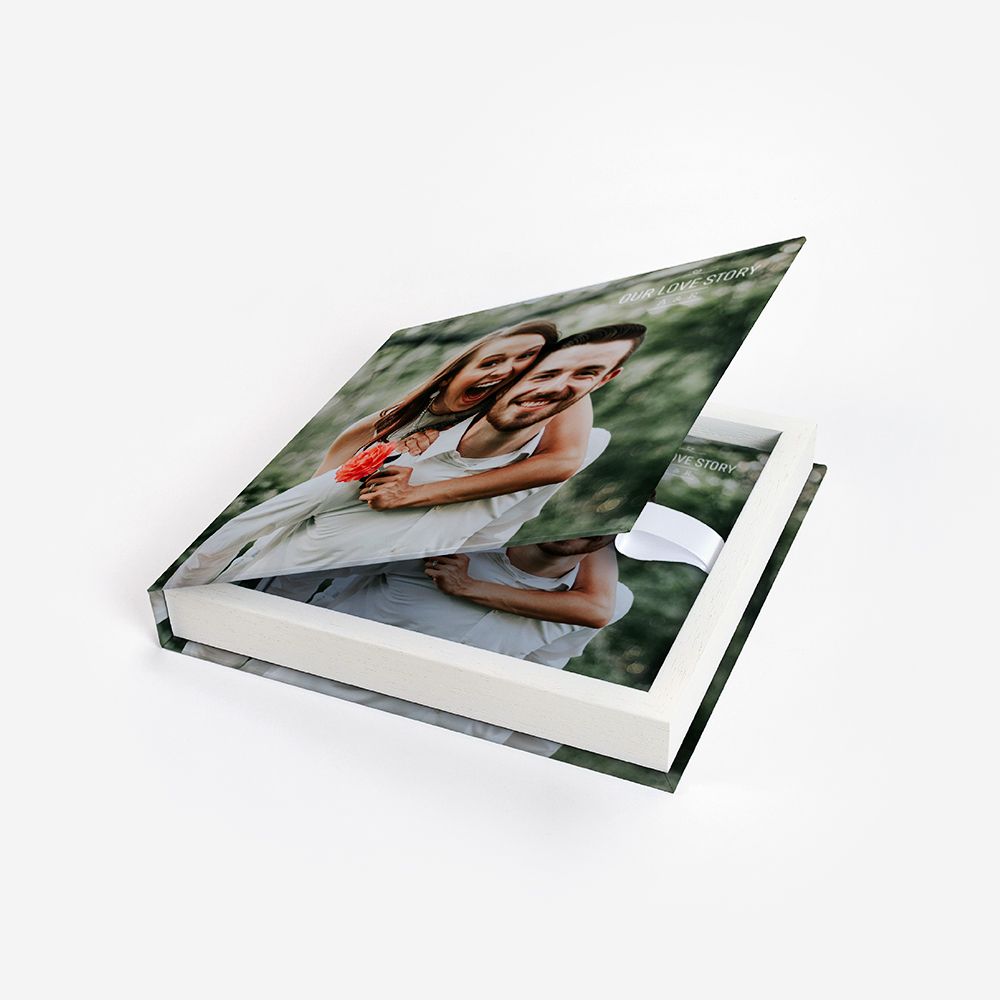 Personaliza a tua Box Square como se de um Álbum se tratasse. Através da sua capa fotográfica, poderás importar fotografias, textos ou cliparts. Se quiseres, poderás ainda replicar a capa do Álbum na Box, criando assim um par perfeito.